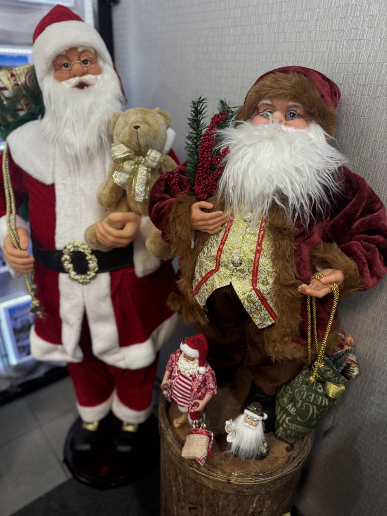 A life-size singing and dancing Santa came from Facebook Marketplace, while a ceramic Christmas tree came from an op shop.