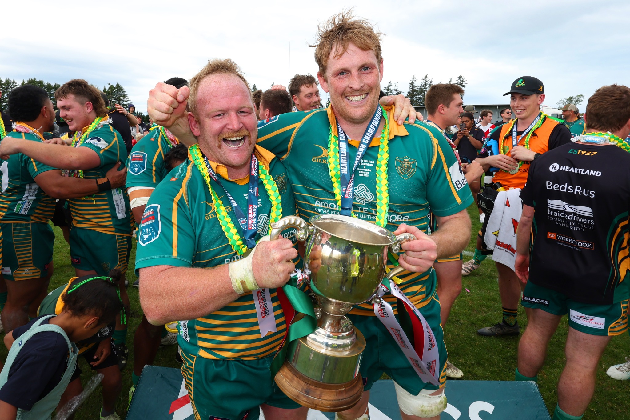 In the lead up to the game, people were decked out in the green and gold colours of Mid Canterbury, had decorated shop frontages and sent messages of support to the team, coached by Matt Winter, and led on-field by co-captains Adam Williamson and Declan McCormack.