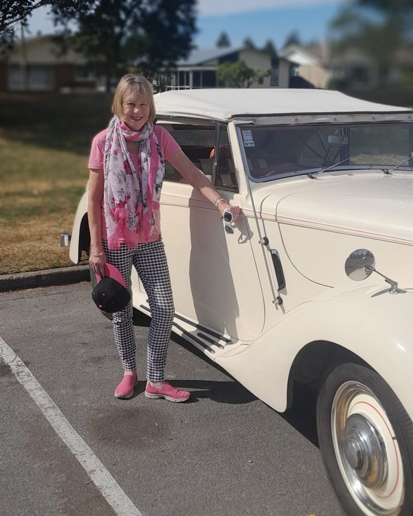 Memories of family friends owing vintage cars influenced Suzanne Holt – happily known as Pink Sue – in her decision to buy a vintage car when she retired from her pharmacy career.
