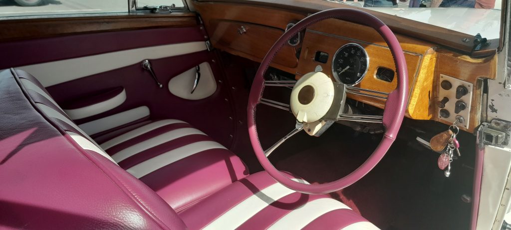 Nowhere is that more evident than in Sue’s colour choice when renewing the upholstery in her car – you guessed it – pink trim.