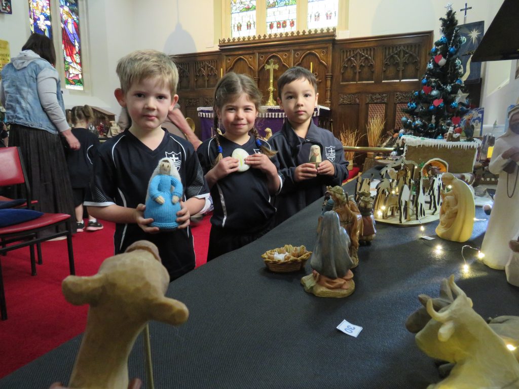 Pupils from Kiwi Class at St Joseph’s School were among one of many groups from pre schools to rest homes who enjoyed their visit to check out about 90 nativity scenes on display at St Stephens Parish .