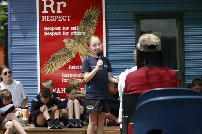 PROUD: Year 5 pupil Tessa Sim speaks at the official opening of the Lauriston School outdoor hub's official opening. PHOTO SUSAN SANDYS