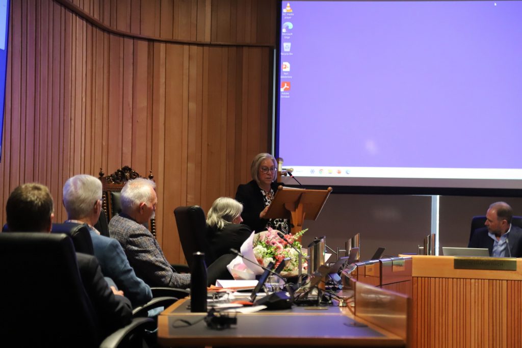 Councillor Lynette Lovett delivering her valedictory speech. PHOTO JONATHAN LEASK/LDR