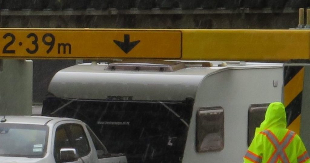 The same afternoon, The Ashburton Courier snapped a photograph of a caravan’s sunroof brushing the top of the pass, maybe unbeknown to the driver of the ute towing it.