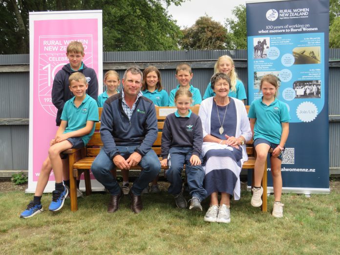 Bev said the bench, made by Dayle Pritchard and the dedication plaque by KJB Systems, acknowledged 100 years of Rural Women New Zealand which had supported many generations of rural women in their everyday lives.