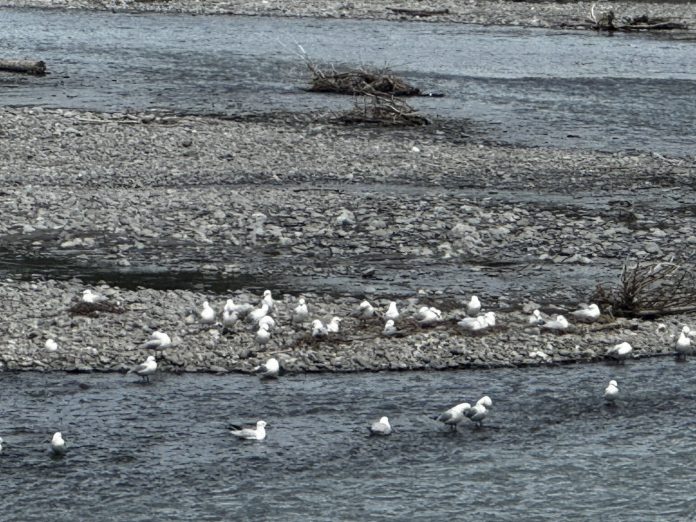 A breeding colony of about 40 tarapuka/black-billed gulls settled in the Ashburton River, at the State Highway 1 bridge, last weekend.