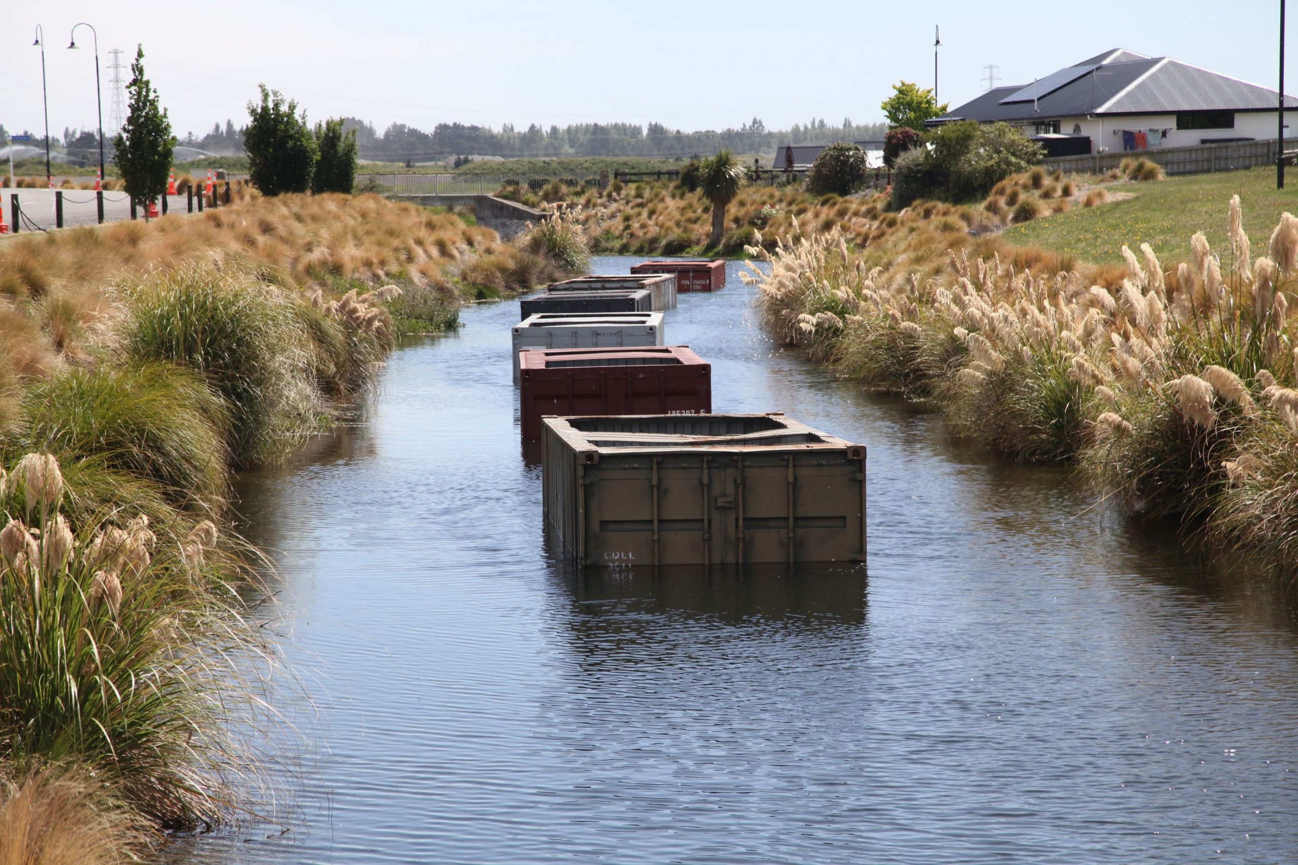 Six shipping containers have been placed in the canals at Ashburton’s popular Lake Hood to be used in water quality trials.