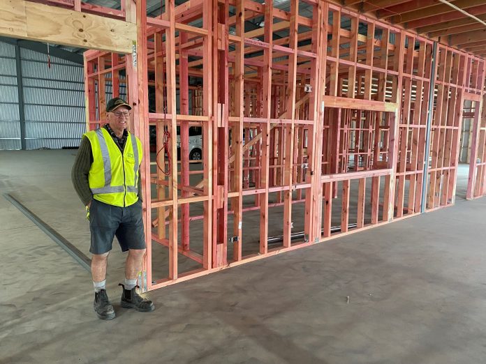 The new building, which joins the existing two hangars, is “all locked up and mostly all framed up inside”.